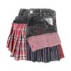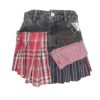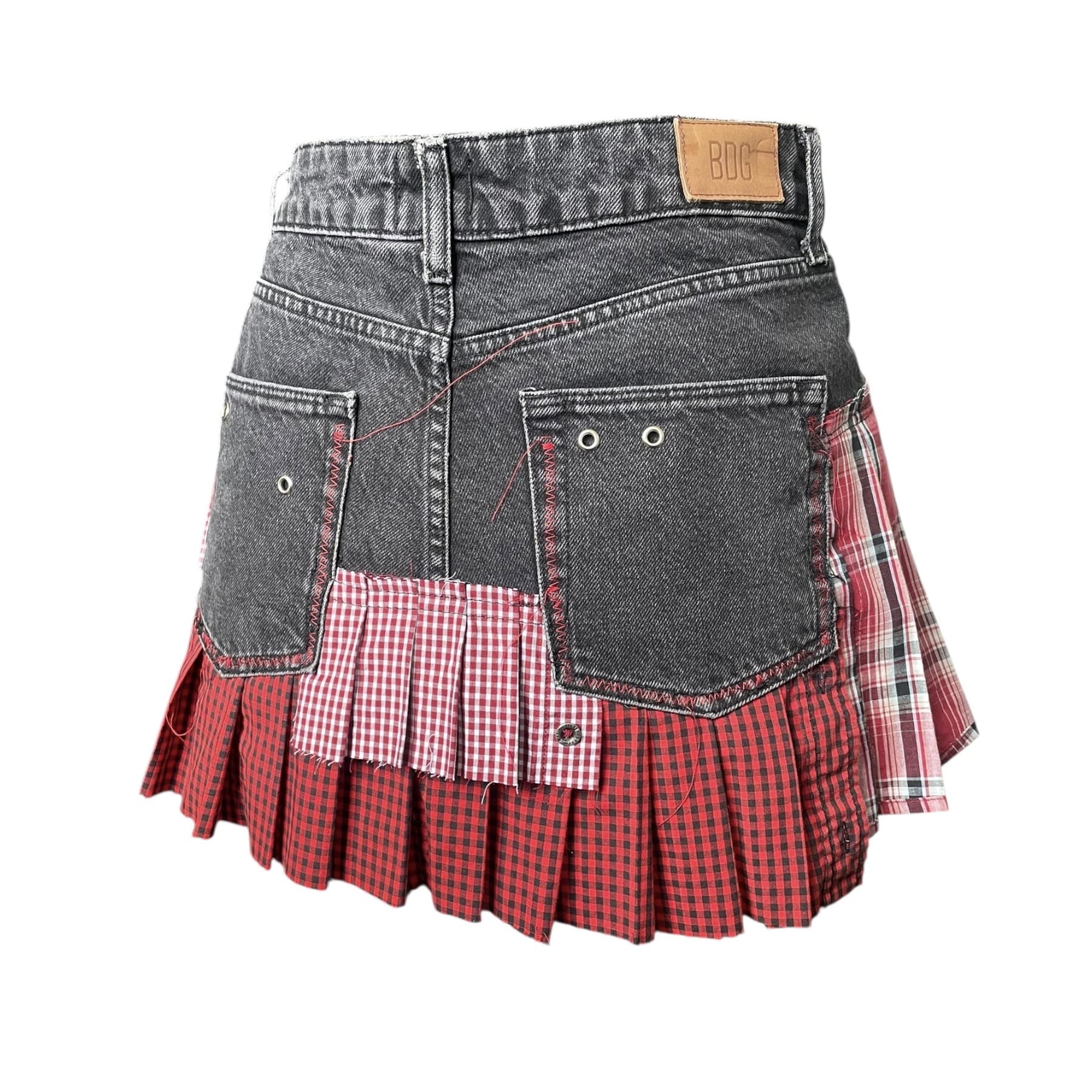 Upcycled jeans into skirt, using a range of second hand materials for the pleats, and completed with various metals.