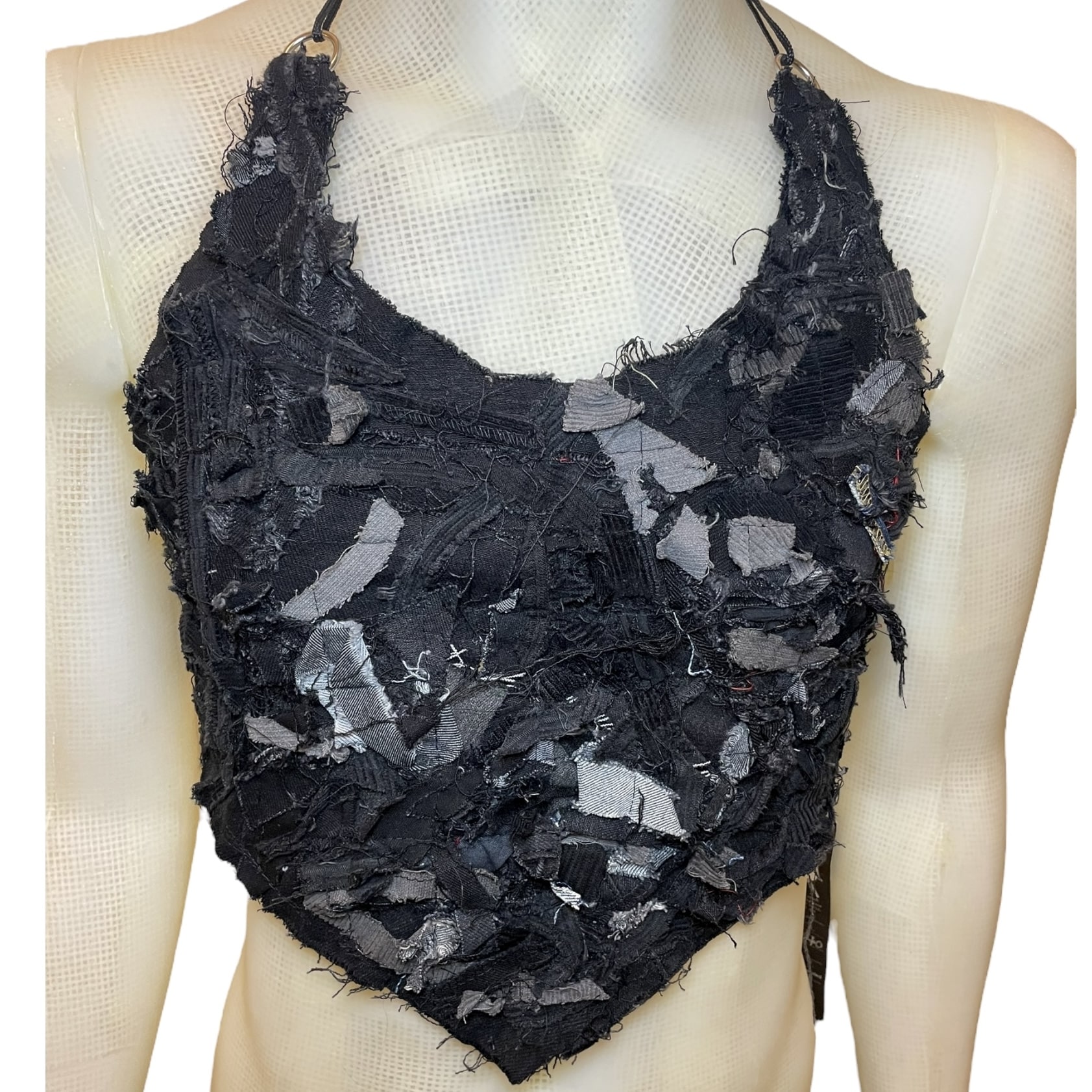 Denim scrap halter, FLAT chest (M)