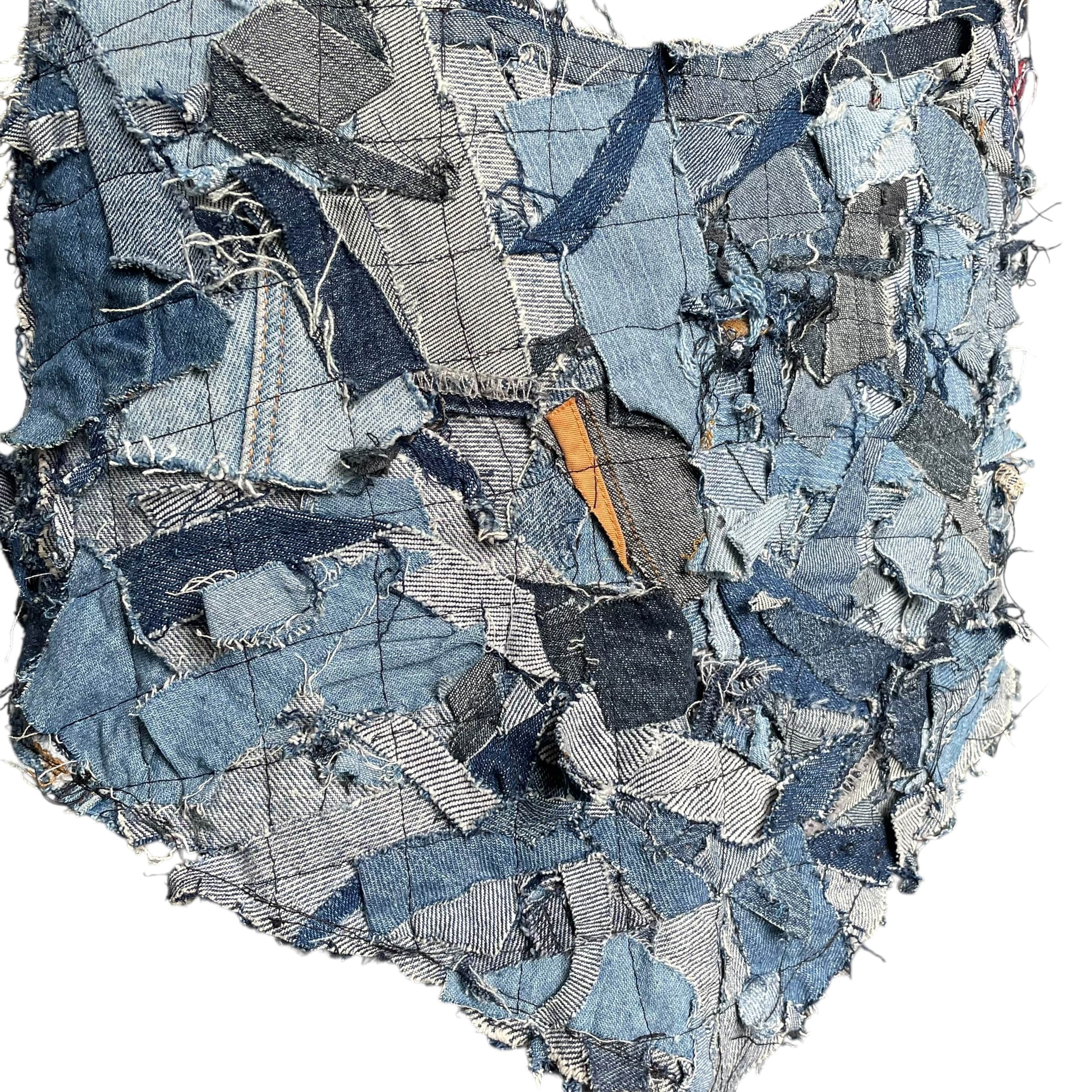 Denim scraps halter, FLAT chest (L)