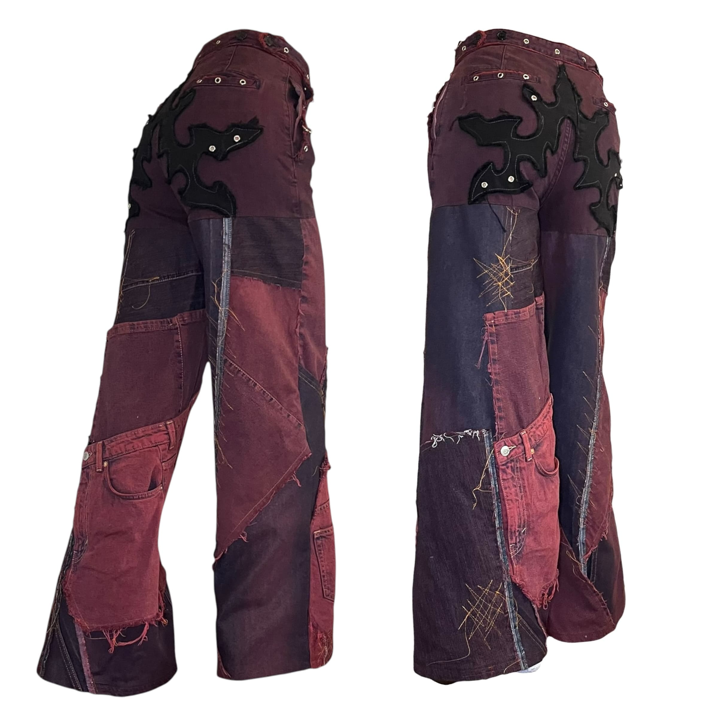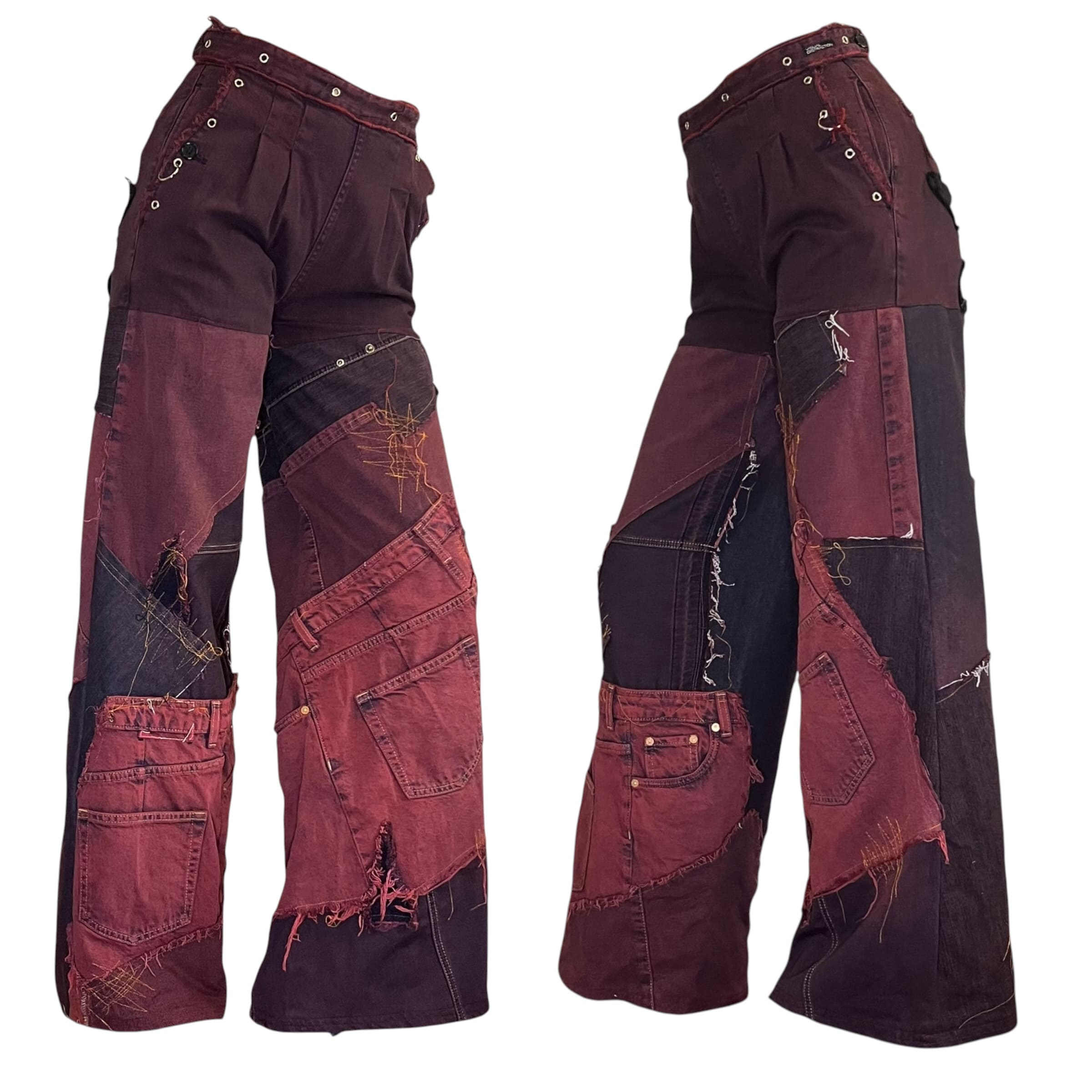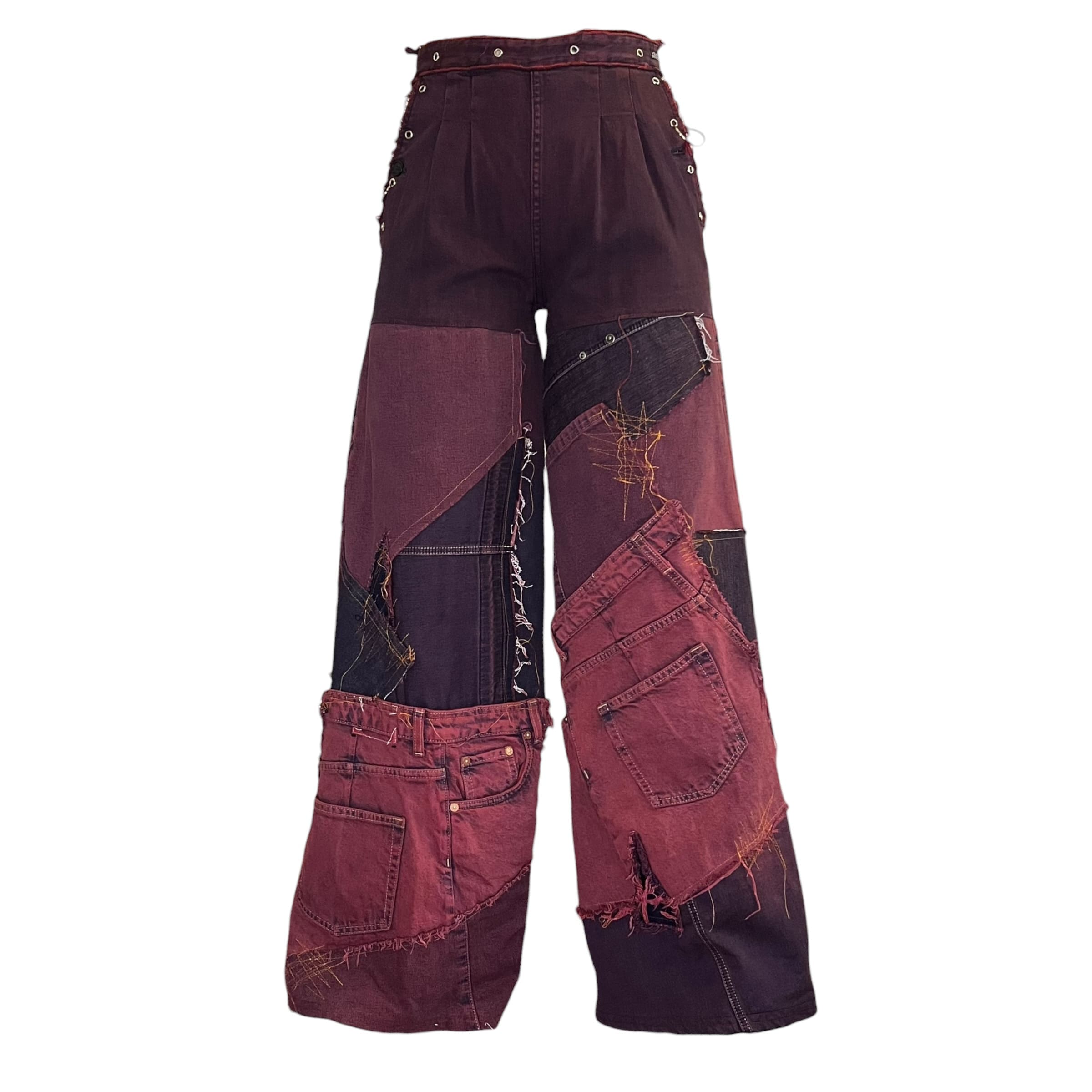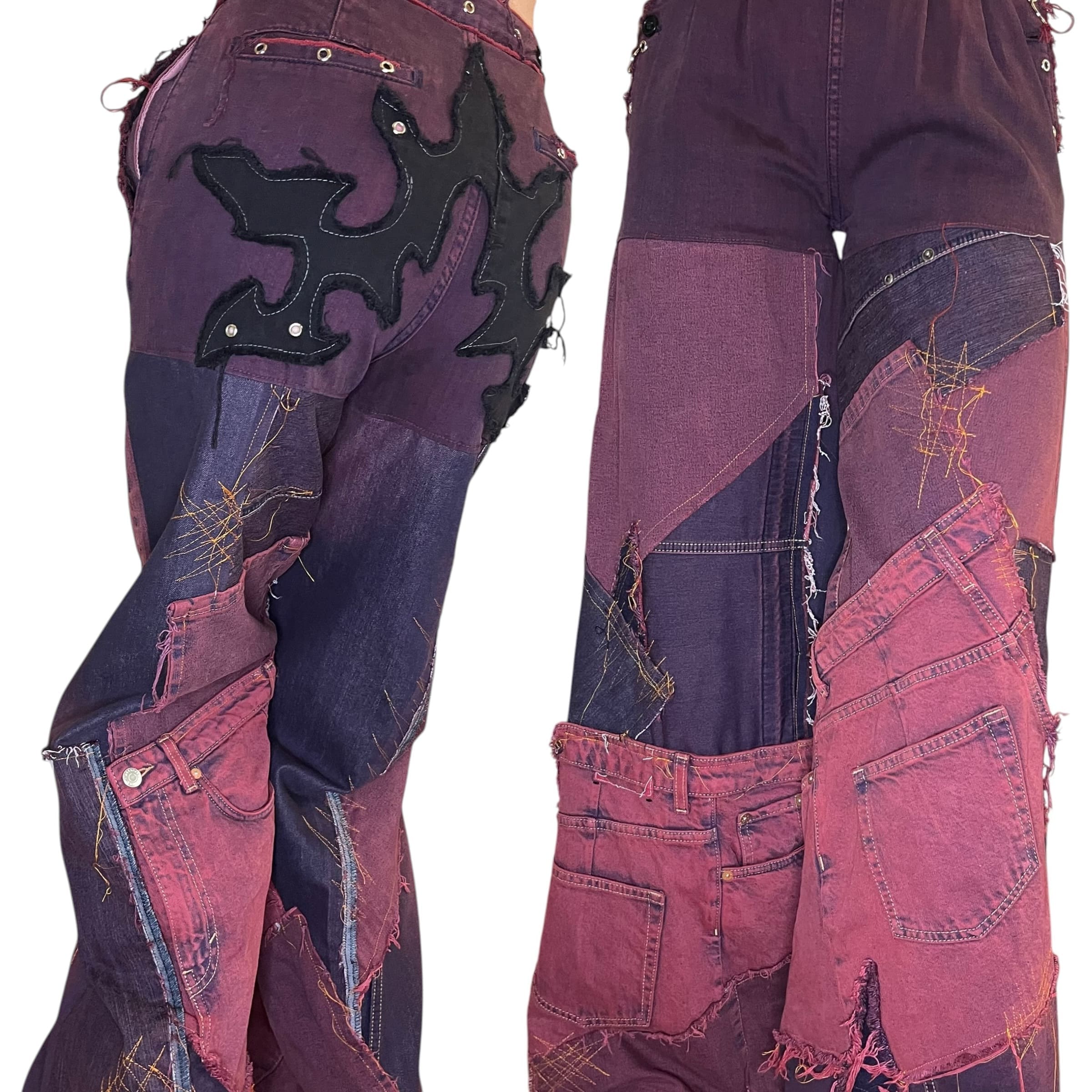 Hand dyed rose baggy high waisted jeans, with orange stitch detailing.