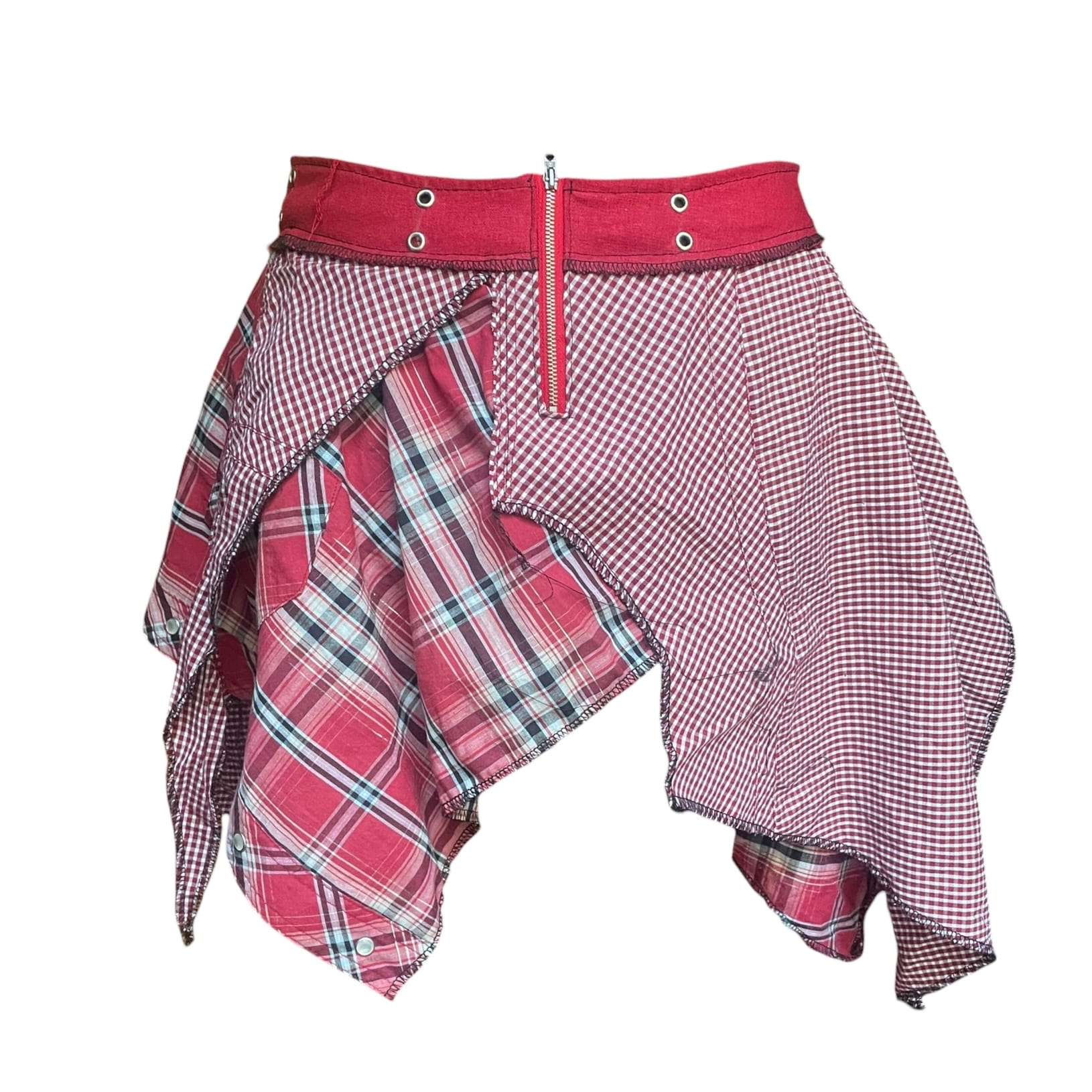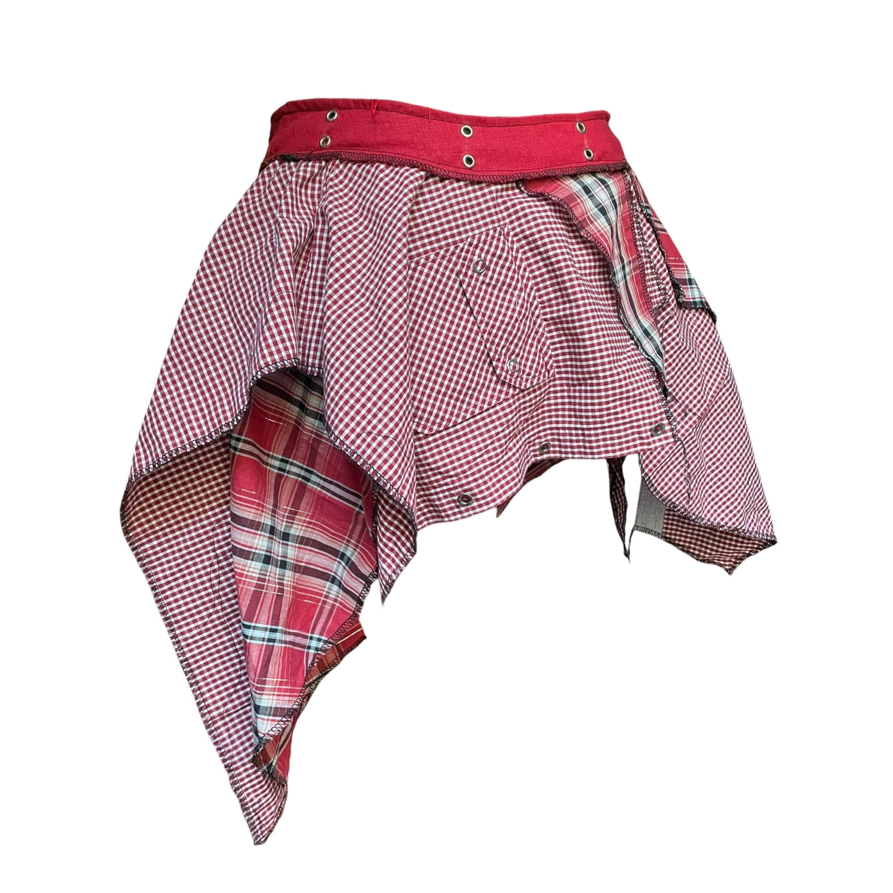 One of a kind item, asymmetric mini skirt with floaty scrap fabrics.